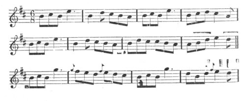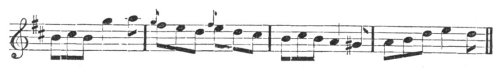 [paragraph continues] This lament was repeated as long as Ian could bear, and these words are still sung by women in that country to their children, to the following notes, which tradition says was the very air:--