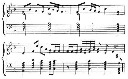 This summer I saw the national dance of the Faroe islanders. A great number of men and women, boys and girls, joined hands and walked round a room singing old heroic ballads in their old Norse tongue. They walked sunwise. When we waltz we go sunwise round the ball-room, when we go round in a reel we do the same, and start with the right foot. The wine bottle and the whisky noggin both circulate sunwise about the table. Lawyers in their revels used to hold hands and dance thrice round the seacoal fire in the Inner Temple Hall, according to ancient usage. Boys hold hands and dance round bonfires. Men and maidens still dance round the Maypole in some benighted parishes in England. In short, this system of dancing, and doing things in circles, sunwise, is almost universal in the north.