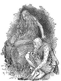 "What's all this to-do about?" said the black witch of Loch Ericht, as she sat at the entrance of the dark cave, blinking with her red een in the blue reek of the peat fire that whirled in puffs out of the cavern, like smoke from some fell dragon's jaws.