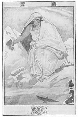 eagles shrieked with joy in mid-air. Beira had great herds and flocks to which she gave her protection-nimble-footed deer, high-horned cattle, shaggy grey goats, black swine, and sheep that had snow-white fleeces. She charmed her deer against the huntsmen, and when she visited a deer forest she helped them to escape from the hunters. During early winter she milked the hinds on the tops of mountains, but when the winds rose so high that the froth was blown from the milking pails, she drove the hinds down to the valleys. The froth was frozen on the crests of high hills, and lay there snow-white and beautiful. When the winter torrents began to pour down the mountain sides, leaping from ledge to ledge, the people said: "Beira is milking her shaggy goats, and streams of milk are pouring down over high rocks."
