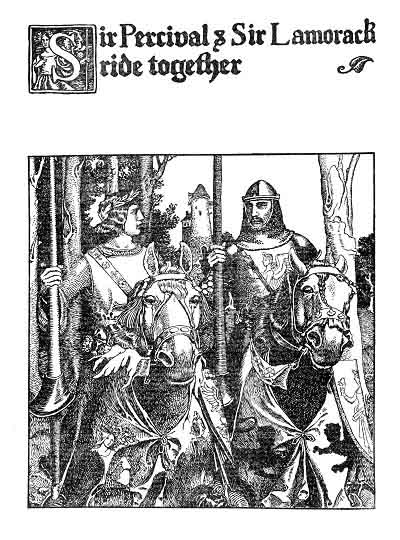 Thus it befell that Sir Lamorack and Sir Percival rode forth together very lovingly and cheerfully. And as they rode upon their way Sir Lamorack told Sir Percival many things concerning the circumstances