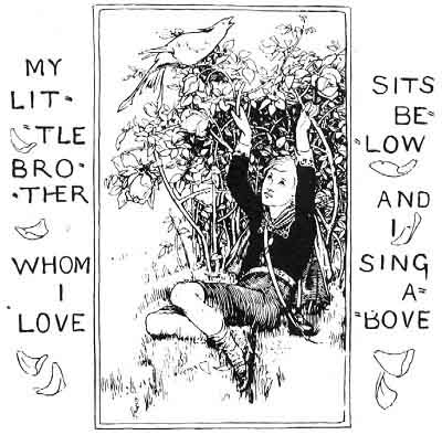 One day the rose-tree flowered. It was spring and there among the flowers was a white bird; and it sang, and sang, and sang like an angel out of heaven. Away it flew, and it went to a cobbler's shop, and perched itself on a tree hard by; and thus it sang: