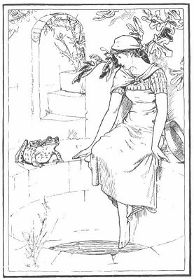 So the girl went and opened the door, and there was the frog from the Well of the World's End. And it hopped, and it hopped, and it jumped, till it reached the girl, and then it said: