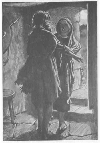 As the unhappy bride came out to the beggar-man he bent his head in greeting, and she noticed his travel-stained dress and said: "You have come from far, good man"; and he replied: "Yes, lady, I have seen many distant lands." "Alas! others have gone to see distant lands and have not returned," said she.