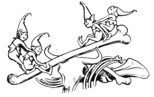Tick, tick, went the clock, and the farmer was nearly tired of waiting; he had to bite his little finger to keep himself awake, when suddenly the door of his house flew open, and in rushed maybe a thousand pixies, laughing and dancing and dragging at Beauty's halter till they had brought the cow into the middle of the room. The farmer really thought he should have died with fright, and so perhaps he would had not curiosity kept him alive.