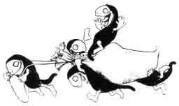 man and woman, and carry off the little girl!' But little dog Turpie barked so that the Hobyahs ran off; and the old man said, 'Little dog Turpie barks so that I cannot sleep nor slumber, and if I live till morning I will cut off another of his legs.' So in the morning the old man cut off another of little dog Turpie's legs.