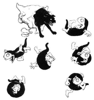 The next night the Hobyahs took down the bag and knocked at the top of it, and said 'Look me, look me!' and when they opened the bag the big dog jumped out and ate them all up; so there are no Hobyahs now.