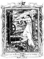 Soon there came riding by the Elfin court, first over the mound went a troop on black steeds, and then another troop on brown. But in the third court, all on milk-white steeds, she saw the Queen of Elfiand, and by her side a knight with a star in his crown, with right hand gloved and the left bare. Then she knew this was her own Tamlane, and springing forward she seized the bridle of the milk-white steed and pulled its rider down. And as soon as he had touched the ground she let go the bridle and seized him in her arms.