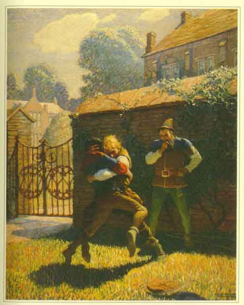 "Catch him by the middle," he shouted. "Now you have him, lording, fairly. Throw him prettily!" And, sure enough, Stuteley came down.