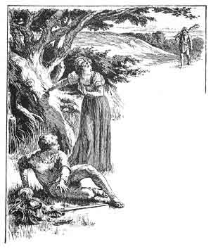 Duessa at first pretended to be angry with the Knight for leaving her so unkindly, but they were soon good friends again. They stayed for some time beside the fountain, where the green boughs sheltered them from the scorching heat.