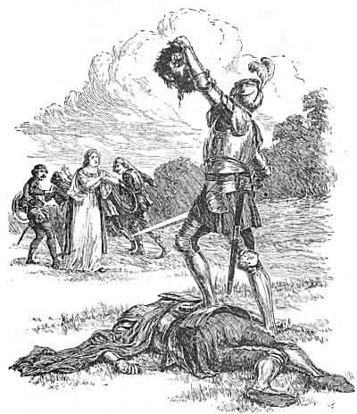 When the people round about saw this they all shouted for joy at his success, glad to be freed from the tyrant who had so long oppressed them. joyously running to the fair Lady Irene, they fell at her feet, doing homage to her as their true liege and princess, while the glory of her champion was sounded everywhere.