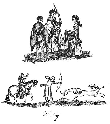 HUNTING AMONG THE SAXONS.--The Germans, and other northern nations, were much more strongly attached to the sports of the field than the Romans, and accordingly they restricted the natural rights which the people claimed of hunting. The ancient privileges were gradually withdrawn from them, and appropriated by the chiefs and leaders to themselves; at last they became the sole prerogative of the crown, and were thence extended to the various ranks and dignities of the state at the royal pleasure.