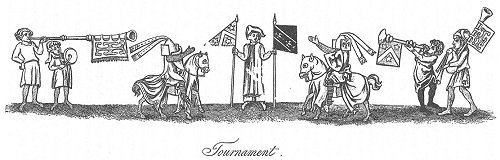 RESPECT PAID TO LADIES IN THE TOURNAMENT.--After the conclusion of the tournament, the combatants, as we have seen above, returned to their dwellings; but in the evening they met again in some place appropriated for the purpose, where they were joined by the ladies, and others of the nobility who had been spectators of the sports; and the time, we are told, was passed in