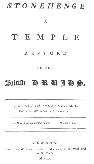 Stonehenge, A Temple Restor'd to the British Druids, by William Stukeley, [1740], at sacred-texts.com