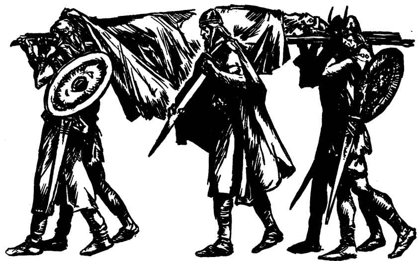 Behind the bier walked fifty barons of Geatsland, the highest and mightiest in all the North; and following them, fifty musicians, with horns and pipes, making a doleful music.