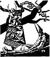 The warriors, having laid aside their armor and swords, rushed to secure the door, but as confusion spread among them and women screamed, the roar persisted in its clangor and at the entrance door blue flames began to lick along the sill.