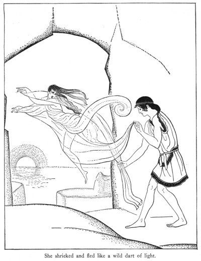 As the maiden touched it, she uttered a shriek and fled like a dart of light beyond the vision of Galanis. He dashed down the rocky path to the sea, calling after her. He was still standing there at dawn, when he heard the voices of fishermen near him on the shore and the barking of dogs upon the hills.