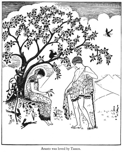 Anasto was loved by Tassos, a shepherd on the hill slopes of Helmos. Tassos loved her with all his innocent heart. Anasto knew it and the people of Pyrgos knew it; even the hills and the wild birds of the hills knew it, because Tassos had whispered it to them. Tassos was handsome and the finest singer in all the village. When his voice rang out, rich and beautiful, from the hills, any of the maidens would have given all that she possessed if his song had been for her. But it was always to Anasto that he sang as he sat on the hillside a little way above her home.