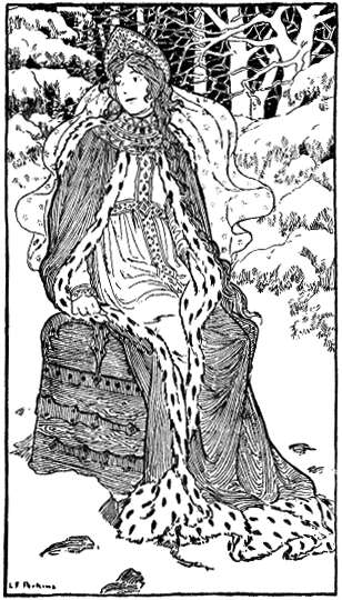 girl into the sleigh. He wished to cover her with a sheepskin in order to protect her from the cold; however, he did not do it. He was afraid; his wife was watching them out of the window. And so he went with his lovely daughter into the wide, wide fields; drove her nearly to the woods, left her there alone, and speedily drove away—he was a good man and did not care to see his daughter's death.