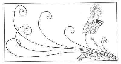 Those who felt the care and the foreboding most deeply were Bragi the Poet and his wife, the fair and simple Iduna, she who gathered the apples that kept age from the Dwellers in Asgard. Bragi ceased to tell his never-ending tale. Then one day, overcome by the fear and the foreboding that was creeping through Asgard, Iduna slipped down Ygdrassil, the World Tree, and no one was left to