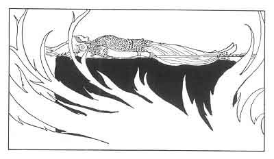 More did Odin All-Father: he took a thorn of the Tree of Sleep and he put it into the flesh of the battle-maiden. Then, with her helmet on her head and the breast-mail of the Valkyrie upon her, he lifted Brynhild in his arms and carried her through the wall of mounting and circling fire. He laid her upon the couch that was within the Hall. There she would lie in slumber until the hero was without fear should ride through the flame and waken her to the life of a mortal woman.