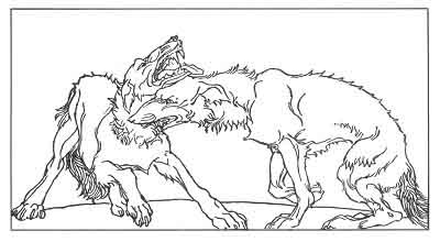 Sigmund and Sinfiotli put on the skins that the men had cast off, and when they did this they changed their shapes and became as wolves. And as wolves they ranged through the forest, now and then changing their shapes back to those of men. As wolves they fell upon King Siggeir's men and slew more and more of them.