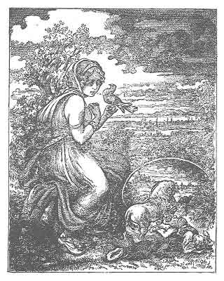 [paragraph continues] "If you had the others as well, you would be even more beautiful." Then she fetched the other two feathers and gave them to her.