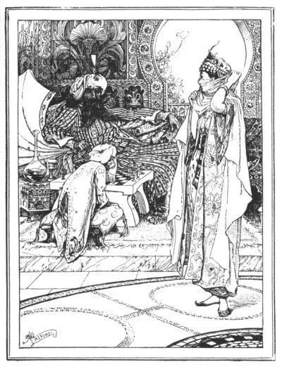 As soon as the Sultan recovered from the severe illness which had seized him after the death of the princess he sent for me and plainly, though politely, informed me that my presence would always remind him of his loss, and he begged that I would instantly quit his kingdom, and on pain of death never return to it. I was, of course, bound to obey, and not knowing what was to become of me I shaved my beard and eyebrows and put on the dress of a calender. After wandering aimlessly through several countries, I resolved to come to Bagdad and request an audience of the Commander of the Faithful.