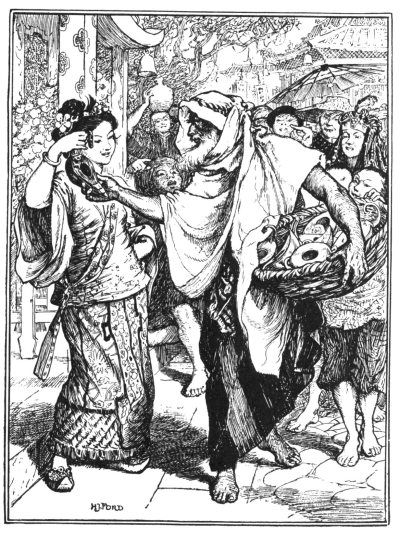 There once lived a poor tailor, who had a son called Aladdin, a careless, idle boy who would do nothing but play all day long in the streets with little idle boys like himself. This so grieved the father that he died; yet, in spite of his mother's tears and prayers, Aladdin did not mend his ways. One day, when he was playing in the streets as usual, a stranger asked him his age, and if he were not the son of Mustapha the tailor.