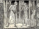 "What wilt thou, my friend? Straightway she fell to making a picture of thee in words; so that I knew that she had met thee, and belike after I had departed from thee, and my heart was sore thereat; for now I will tell thee the very truth, that she was a young woman and exceeding fair, as if she were of pearl all over, and as sweet as eglantine; and I feared her lest she should meet thee again in these wildwoods. And so I asked her what would she, and she said that she had a mind to seek to the Well at the World's End, which quencheth all sorrow; and I rejoiced thereat, thinking that she would be far away from thee, not thinking that thou and I must even meet to seek to it also. So I gave her the chaplet which my witch-mistress took from the dead woman's neck; and went with her into the wildwood, and taught her wisdom of the way and what she was to do. And again I say to thee that she was so sweet and yet with a kind of pity in her both of soul and body, and wise withal and quiet, that I feared her, though I loved her; yea and still do: for I deem her better than me, and meeter for thee and thy love than I be.—Dost thou know her?"