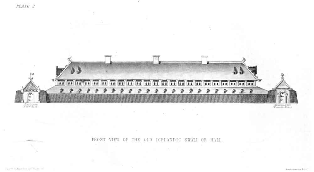 FRONT VIEW OF THE OLD ICELANDIC SKÁLI OR HALL