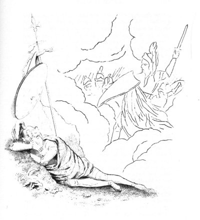 Selma's king looked around. In his presence we rose in arms. But who should lift the shield? for all had claimed the war. The night came down; we strode in silence, each to his hill of ghosts, that spirits might descend in our dreams to mark us for the field. We struck the shield of the dead: we raised the hum of songs. We thrice called the ghosts of our fathers. We laid us down in dreams. Trenmor came, before mine eyes, the tall form of other years! His blue hosts were behind him in half-distinguished rows.--Scarce seen is their strife in mist, or the stretching forward to deaths. I listened, but no sound was there. The forms were empty wind!