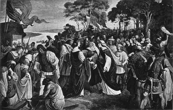 "Gunther entreats thee to come to the shore, the prince said, "so that thou mayest welcome Brunhild hither."