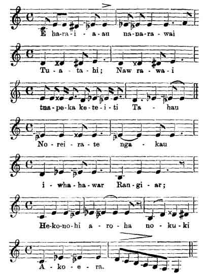 Suffice it to say, that many Chinese airs, of which I have two, show the diesic modulations and the saltus combined; but the majority of the New Zealand airs which I have heard are softer and more 'ligate', and have a great predominance of the diesic element.