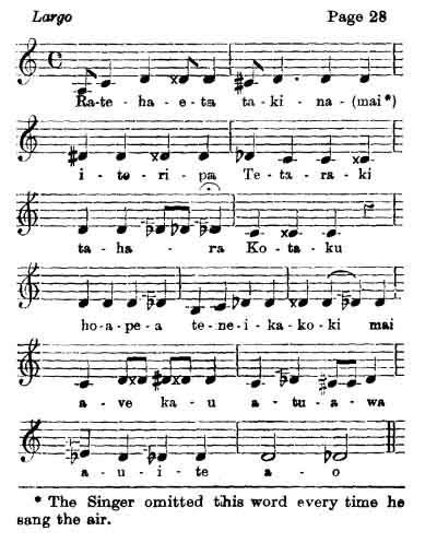 The run at the end is also met with in the New Zealand songs. The cadence is mixed, i.e. enharmonic and diatonic.