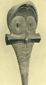 Club from the Marquesas Islands. The decoration of heads and faces in various combinations is unquestionably symbolic, but the precise meaning of the various figures is unknown. Peabody Museum, Cambridge, Massachusetts.