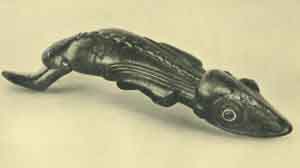 Mythical animal carved from drift-wood. Figures of this sort are supposed to have been used in connexion with ancestral worship. Easter Island. Peabody Museum, Cambridge Massachusetts.