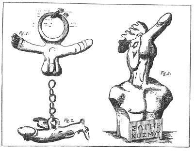 [paragraph continues] Litanies are received;" and the other, Qui si riceveno li Voti: "Here the Vows are received." The price of a Mass is fifteen Neapolitan grains, and of a Litany five grains. On each table is a large bason for the reception of the different offerings. The Vows are chiefly presented by the female sex; and they are seldom such as represent legs, arms, &c., but most commonly the male parts of generation. The person who was at this fete in the year 1780, and who gave me this account (the authenticity of every article of which has since been fully confirmed to me by the Governor of Isernia), told me also, that he heard a woman say, at the time she presented a Vow, like that which is presented in Plate 1, Fig. i., Santo Cosimo benedetto, cosi lo voglio: "Blessed St. Cosmo, let it be like this;" another, St. Cosimo, a te mi raccommendo: "St. Cosmo, I recommend myself to you;" and a third, St. Cosimo, ti ringrazio: "St. Cosmo, I thank you." The Vow is never presented without being accompanied by a piece of money, and is always kissed by the devotee at the moment of presentation.