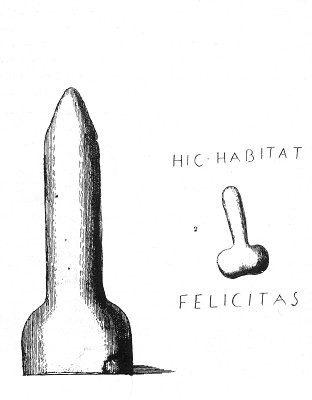 [paragraph continues] Italy, and in Spain. It must not, then, be wondered at that at a period when this worship was freely admitted into the palaces of the great and rich, there should be found a humble artisan who had the notion of placing on his stall the protecting image of this singular god. Hic habitat felicitas, here happiness dwells; it is in the shelter of this revered image that we live exempt from trouble and care.