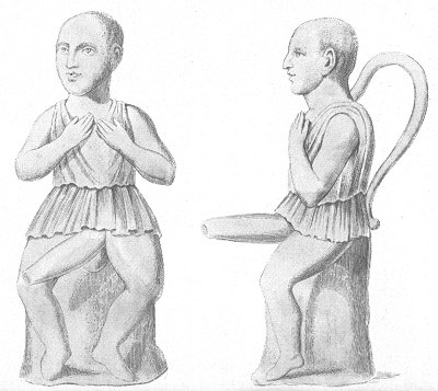 LIKE the former, this is another specimen of the drillopotæ, representing a dwarf, a child's body with the head of an old man. Its figure is as much out of proportion as its attitude is obscene and yet its gestures seem too indicate modesty.