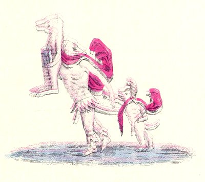 easily be seen that the safety of the family had necessarily to depend on him, for he seems to be of a higher organization of life than his companions: he has at least the legs of a man, whereas his father and his son have rather those of a quadruped.