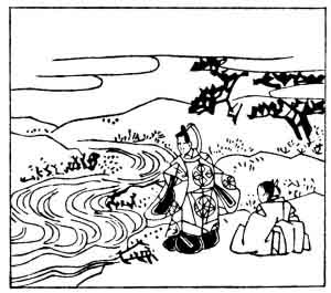 Kanesuke was a member of the Fujiwara family; he died in the year 933. The River Izumi is in the Province of Yamashiro.
