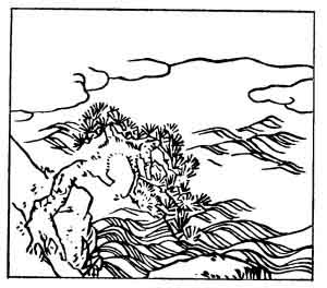Oki-kaze, the son of Michinari, was an official in the Province of Sagami in the year 911; the date of his death is unknown, but he is mentioned as being alive as late as the year 914. Takasago, which is mentioned again in verse No. 73, is a seaside place in the Province of Harima, famous for its pine trees; the pine tree is one of the recognized emblems of long life in Japan, because it is believed that after a thousand years its sap turns to amber.