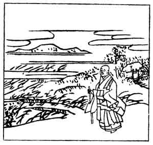 Nothing is known of this author, but he appears to have lived during the eleventh century. The Priest appears in the illustration, looking out over the bare landscape, with his tiny hut in the background.