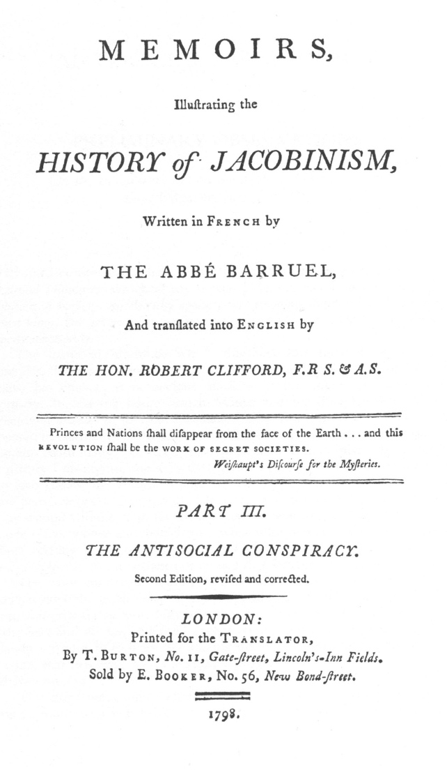 Code of the Illuminati: Part III of Memoirs Illustrating the History of Jacobinism, by A Barruel, tr. Robert Edward Clifford [1798], at sacred-texts.com