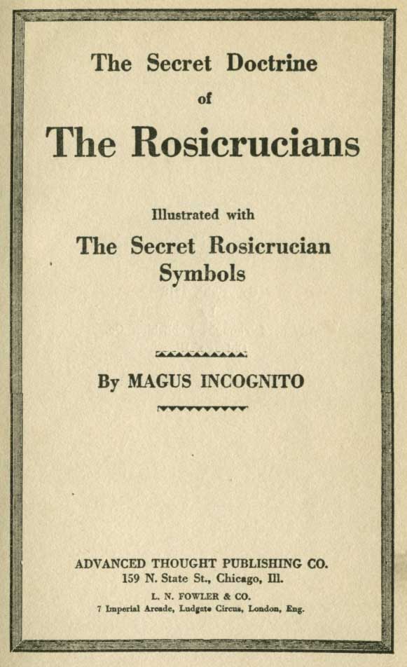 The Secret Doctrine of the Rosicrucians, by Magus Incognito, [1918], at sacred-texts.com