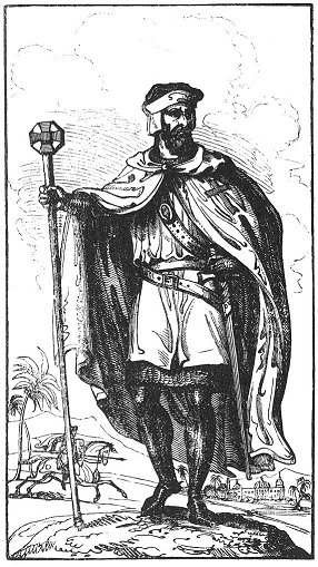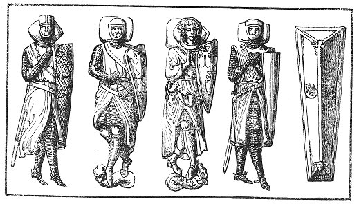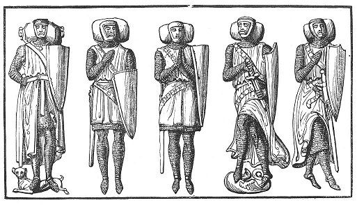 Each knight was supplied with clothes, arms, and equipments, out of the funds of the order. His dress was a long white tunic, nearly resembling that of priests in shape, with a red cross on the back and front of it; his girdle was under this, over his linen shirt. Over all he wore his white mantle with its red cross of four arms (the under one being the longest, so that it resembled that on which the Saviour suffered) on the left breast. His head was covered by a cap or a hood attached to his mantle. His arms were shield, sword, lance, and mace; and, owing to the heat of the East, and the necessity of activity in combats with the Turks and Saracens, his arms and equipments in general were lighter than those used by the secular knights. He was allowed three horses and an esquire, who was either a serving-brother of the order or some layman who was hired for the purpose. At times this office was performed by youths of noble birth, whom their parents and relatives gladly placed in the service of distinguished knights of the Temple, that they might have an opportunity of acquiring the knightly virtues; and these often became afterwards members of the order.