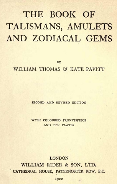 The Book of Talismans, Amulets and Zodiacal Gems, by William Thomas and Kate Pavitt, [1922], at sacred-texts.com