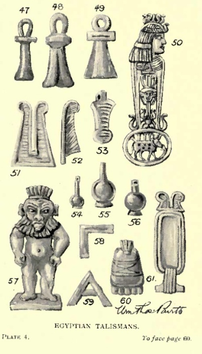 Certain Amulets not only were worn during life, but were even attached to the dead body. They are described in the following notes: