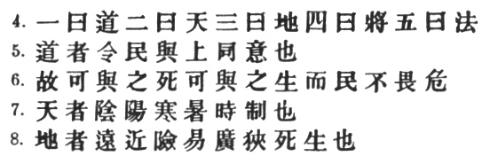 2:1 It appears from what follows that Sun Tzŭ means by # a principle of harmony. not unlike the Tao of Lao Tzŭ in its moral aspect. One might be tempted to render it by "morale," were it not considered as an attribute of the ruler in § 13.